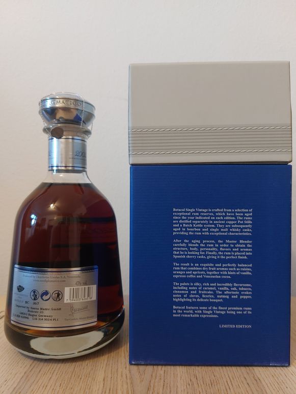 Botucal Single Vintage 2002 je dalším výsledkem kreativity Tita Cordera, jenž působí v Destilerías Unidas S. A. na pozici Master Blender. Vývoj destilátu začal v sudech po Bourbon whiskey a single malt Scotch whisky, závěrečnou etapu absolvoval v sudech po sherry. Jeho vynikající vlastnosti jsou důsledkem sklizně mimořádně kvalitní cukrové třtiny. Vysoké denní teploty a relativní vlhkost a paradoxně zároveň nižší srážky vytvářely ideální podmínky pro rostlinu. Jak uvedl José Ballesteros, nejvyšší představitel Destilerias Unidas, na jiném místě: „Vyrábíme určitou várku rumu pokaždé, když se rozhodneme, že úroda cukrové třtiny stála zato.“